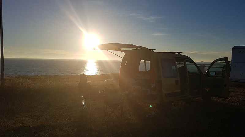 Wir schlenderten den ganzen Tag ziellos durch Porto und ließen uns einfach nur treiben. Nach 24.000 Schritten wurde es gegen Nachmittag langsam Zeit, einen Übernachtungsplatz zu suchen und wir fanden ihn hoch oben auf einem Felsen mit Blick auf den Atlantik. Genial! Standardmäßig kauften wir noch Käse, Schinken, Baguette, Schoki, Chips, Bier und Wein ein und ließen es uns gut gehen. Lustig ist es, wenn man mit anderen Campern zusammensteht und in einem Ei wie einem Kangoo campt. Die Nachbarn fühlen sich aufgerufen, uns zu „helfen“. Korkenzieher, morgens heißes Wasser und Tee landeten bei uns inklusive einer neuen netten Bekanntschaft aus Wiesbaden.