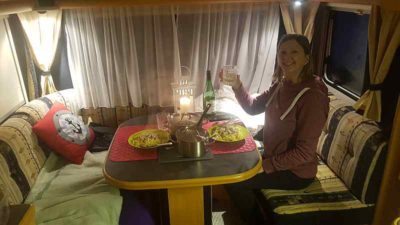 Wir sind durch die bei uns ständig wechselnden Lebensumstände recht gut trainiert. Das Leben im Wohnwagen schreckt uns nicht ab und wir kommen gut miteinander klar. Auch auf engstem Raum.